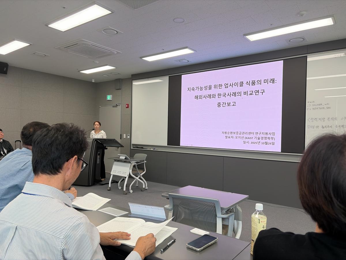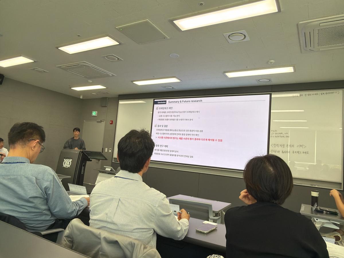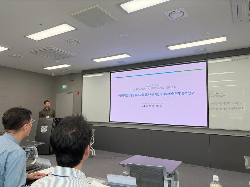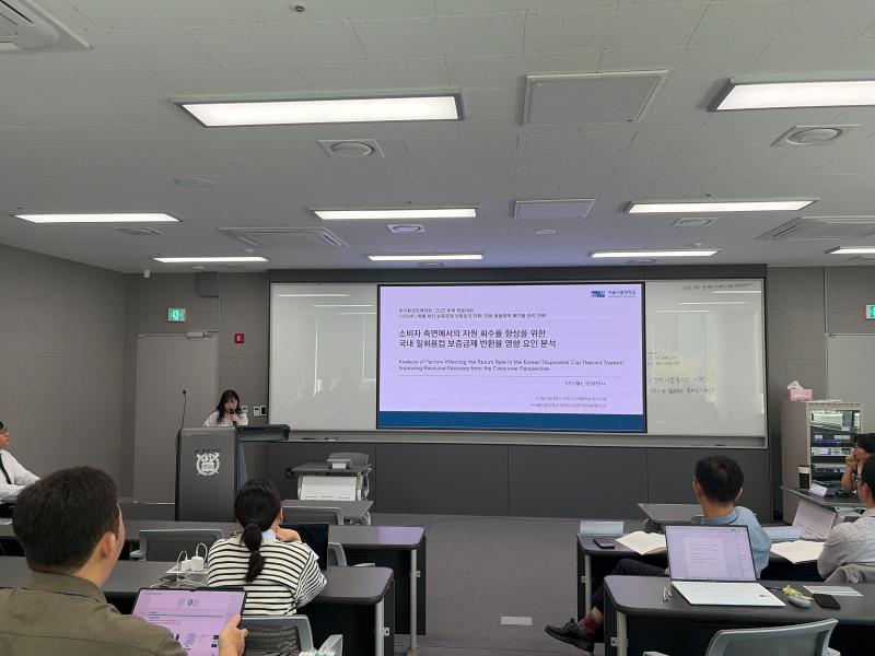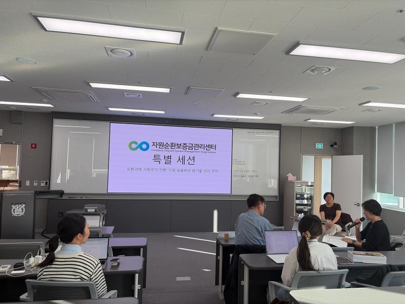 한국환경정책학회 추계 학술대회 특별 세션 개최 작성자COSMO1 작성일2025.10.30 조회수63 2025년 폐기물자원순환학회 추계 학술대회에서 센터의 연구지원사업 관련 특별 세션(10월 24일, 세종공동캠퍼스)이 개최되었습니다.특별 세션에서는 자원순환보증금제도 및 자원순환분야 활성화를 위한 연구 지원사업 소개와, 지원사업에 참여중인 연구자(6인)의 성과발표가 함께 진행되었습니다.성과발표 후 간단한 토론을 통해 연구 지원사업에 대해 심도있게 논의하는 시간을 가졌습니다. 이전 슬라이드 다음 슬라이드 이전 슬라이드 다음 슬라이드 첨부파일 세션 시작.jpg (2MB / 다운로드:9회) 미리보기 다운로드 인사말.jpg (2MB / 다운로드:9회) 미리보기 다운로드 발표1.jpg (1MB / 다운로드:10회) 미리보기 다운로드 발표2.jpg (1MB / 다운로드:9회) 미리보기 다운로드 발표3.jpg (1MB / 다운로드:10회) 미리보기 다운로드 발표4.jpg (1MB / 다운로드:9회) 미리보기 다운로드 발표5.jpg (1MB / 다운로드:10회) 미리보기 다운로드 발표6.jpg (1MB / 다운로드:10회) 미리보기 다운로드 토론.jpg (1MB / 다운로드:9회) 미리보기 다운로드